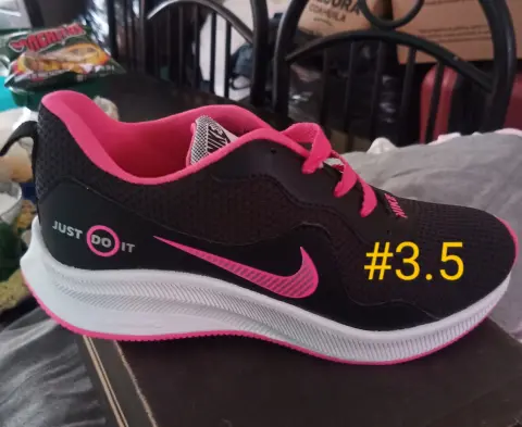 Lindos tenis número 3.5 aveces vienen reducidos color negro con fiusha muy cómodos .