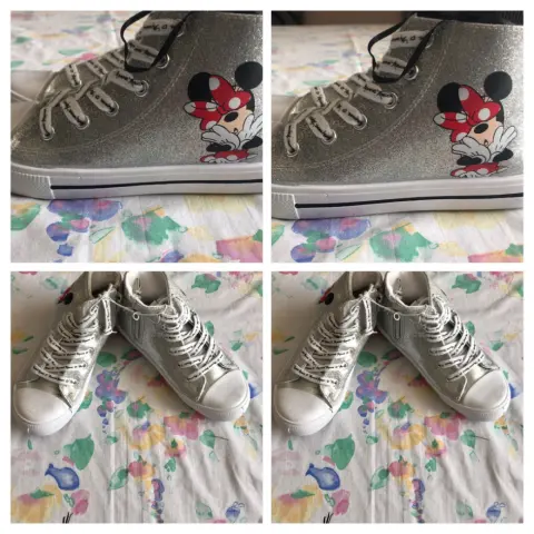 tenis suela blanca y color brillitos con estampado de Miky muy comodos y muy bonitos