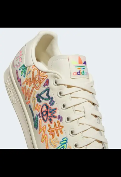 Tenis Adidas. Anatomía de las zapatillas adidas Stan Smith X Kris Andrew Small PrideEste calzado, diseñado por adidas, cuenta con una elaboración de material ultra resistente. Tiene un sistema de amarre con cordones y lengüeta para tu confort. Además, la suela hecha de goma aporta una gran comodidad y cuidado a tu pie.