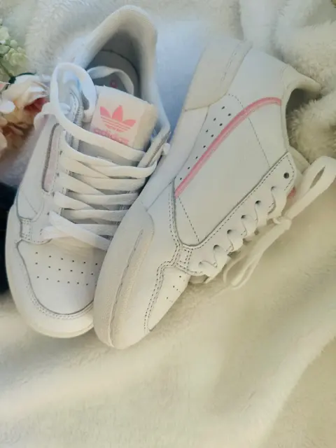Tenis Adidas Continental 80 White & Pink. 💗Tenís Adidas solo se usaron 1 Como nuevos.💗El color es blanco con rosa.💗La etiqueta dice 3 pero viene amplio queda bien para 31/2 o 4 💐cualquier duda con gusto💐
