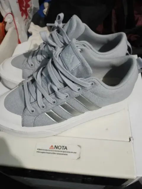Tenis Adidas de plataforma elevada solo una puesta están nuevos sin ningún detalle. Son de color gris talla 25