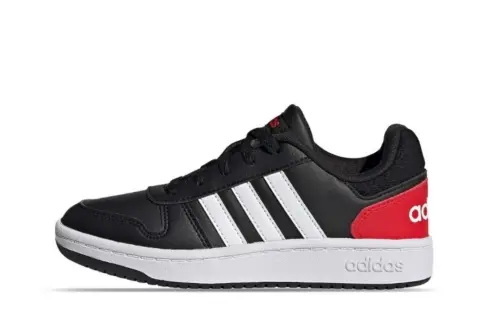 Tenis Adidas Hoops 2.0 🤍🖤. Tenis Adidas Hoops talón rojo en excelente estado, super cómodos y combinables prácticamente nuevos
