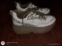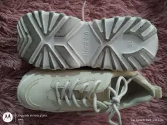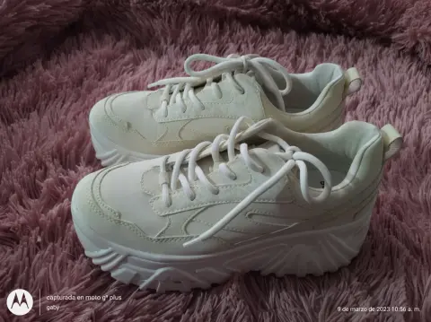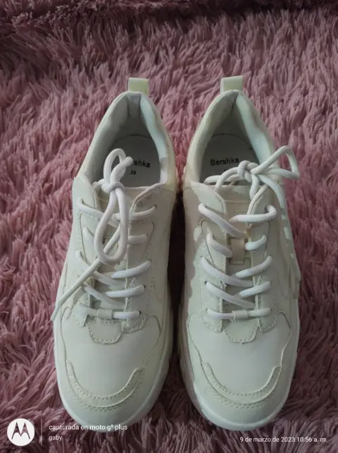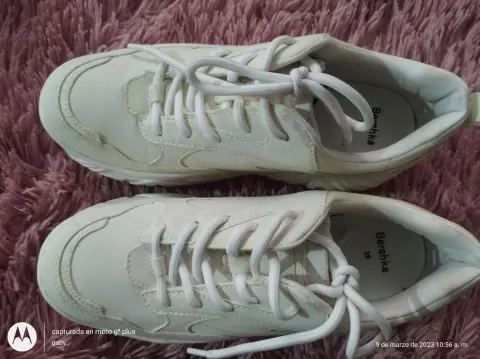 Tenis Bershka #38. Solo una puesta se pigmentaron un poco y su color cambio como se mira en las fotos, cambian de color por efecto de luz, están hermosos y no tienen ningún otro detalle, la plataforma es de 8cm.