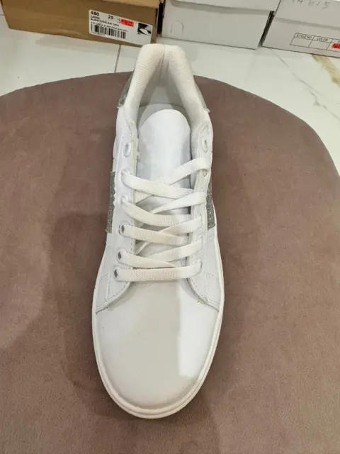 Tenis color blanco con detalles plateados Plataforma de 3cm