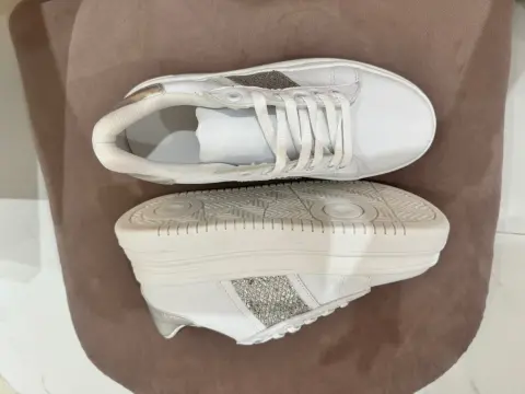 Tenis blancos. Tenis color blanco con detalles plateados Plataforma de 3cm