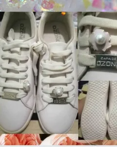 Tenis Capa de Ozono. Lindos tenis Rosa pálido, con Dije de flor y placa de la marca en agujeta , muy cómodos por su diseño de punta redonda.