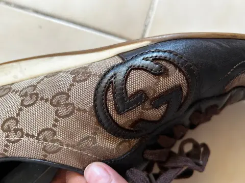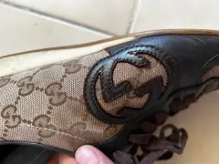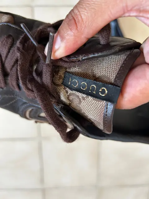Tenis casuales Gucci. Tenis casuales son talla 4, vienen amplios , tienen un raspón enfrente anexo evidencias