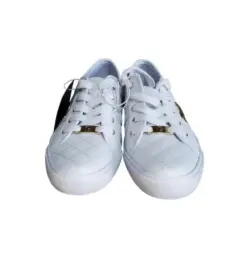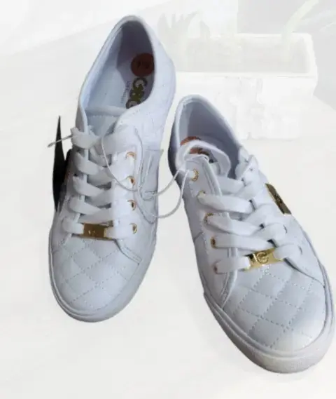 SUPER COMODOS TENIS GUESS- GGBYRONES-C- PIEL- BLANCOS- HARDWARE TONO DORADO- TALLA 4.5M MEX 7.5M USA- AJUSTABLE LACE- UP- SIN CAJA