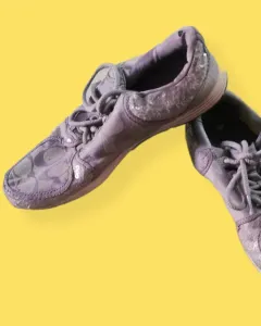 Tenis coach plateados, originales, tiene su holograma clásico y lentejuelas. Tiene un pequeño detalle en la parte de adentro atrás que realmente no se ve puesto y no afecta su uso.