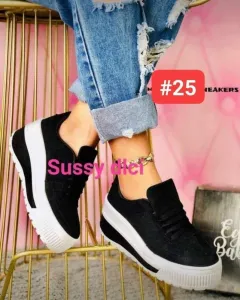 Hermoso par de tenis con PlataformaEn color negro con blancoNúmero veinticincoTotalmente nuevosNingún detalleSuper cómodos y combinan con todo