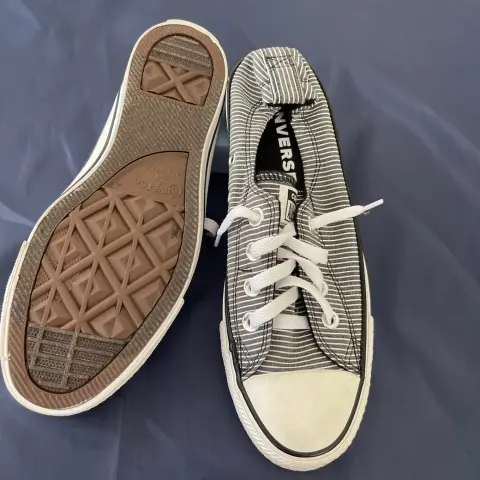 Tenis 👟 CONVERSE a Rayas talla 24.5 los recomiendo para un pie delgado todos los detalles se aprecian en las fotografías