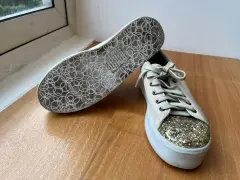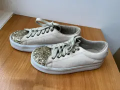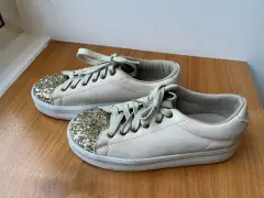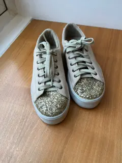 Súper lindos tenis de niña color beige con diamantina al frente, tienen un poco de plataforma Talla 22 Marca C&A