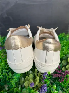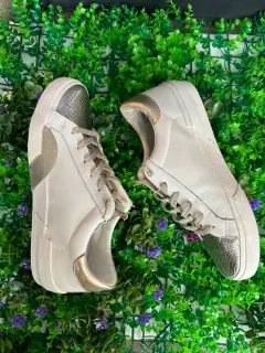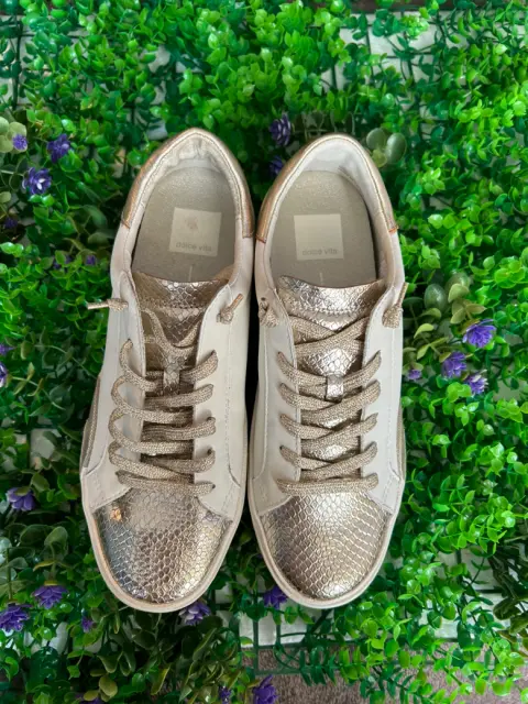 Tenis/Sneakers dorado con blanco. 24.5 Méx. Envío sábados tal vez antes. No hago intercambios ni apartados. Marca dolce vita. Fiel a su talla.