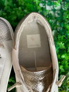 Tenis dorado con blanco. Tenis/Sneakers dorado con blanco. 24.5 Méx. Envío sábados tal vez antes. No hago intercambios ni apartados. Marca dolce vita. Fiel a su talla.