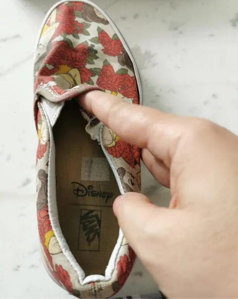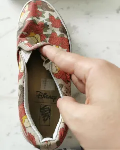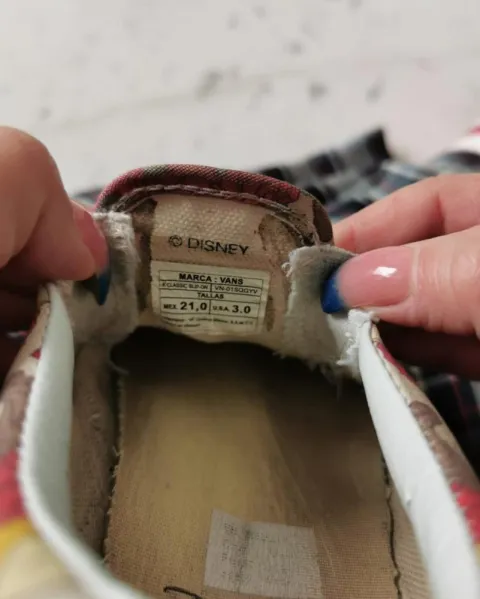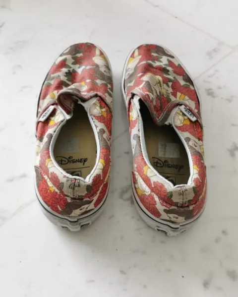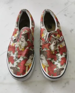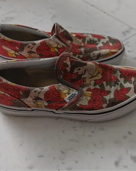 Tenis estampados Vans Disney. Tenis de lona con estampado de Bella con rosas. Estan en buen estado, aplastados y opacos por estar mal guardados y por humedad. Número 1 México.