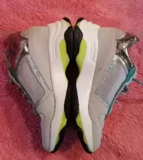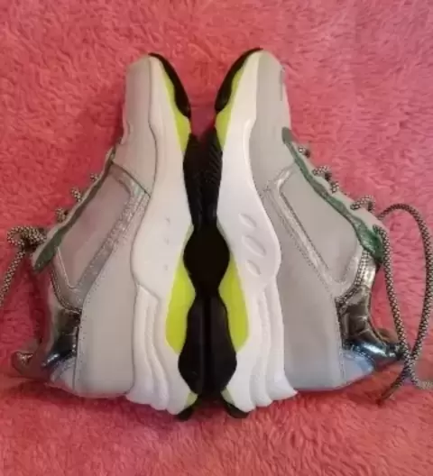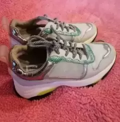 Tenis en excelentes condiciones, muy poco uso.Tienen una mínima raspadita en la parte interna de uno de ellos que se observa en las fotos, es muy pequeño, todo lo demás super bien.Son de plataformaTalla 24.5 pero considero que están ligeramente justos.