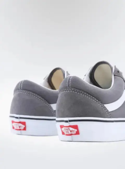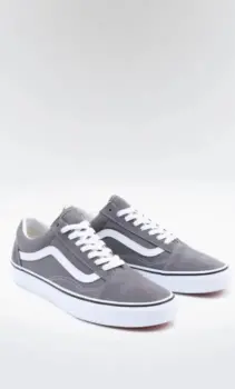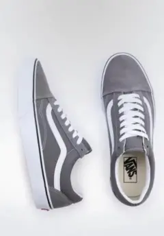Tenis gris Vans. Tenis vans modelo old skool gris con franjas blancas .