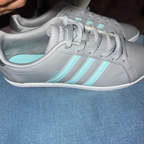 Tenis grises con azul agua. Tenis NUEVOS sin detalle talla 5, cómodos y con caja