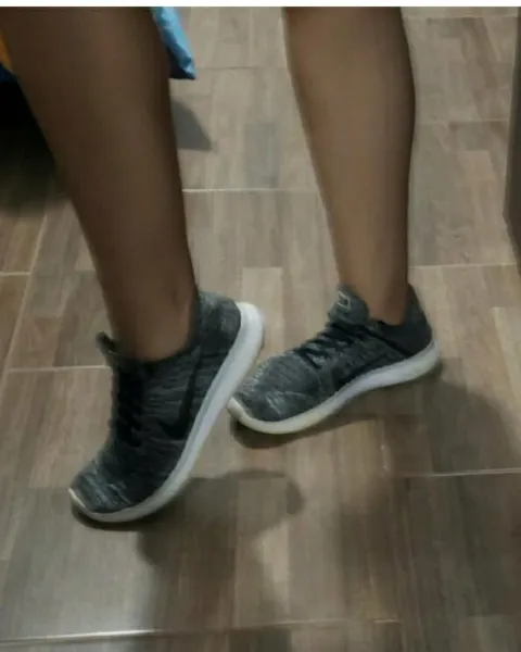 Ligeros y cómodos tenis grises, talla 4.5 listos para entrenar o correr. La suela se ve ligeramente manchada, puestos es casi imperceptible.