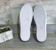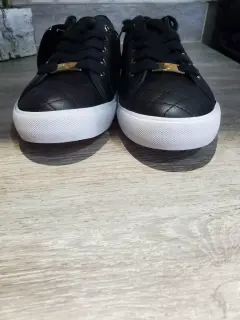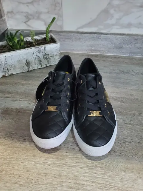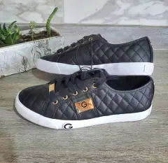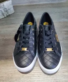 SUPER COMODOS TENIS CASUALES GUESS- GGBYRONE5-C- 2890423- PIEL- TONO NEGRO- PUNTA REDONDA- CINTAS- HARDWARE TONO DORADO CON EMBLEMA DE LA MARCA- TALLA 5M MEX. 8M USA- AJUSTABLE LACE- UP- SIN CAJA
