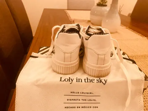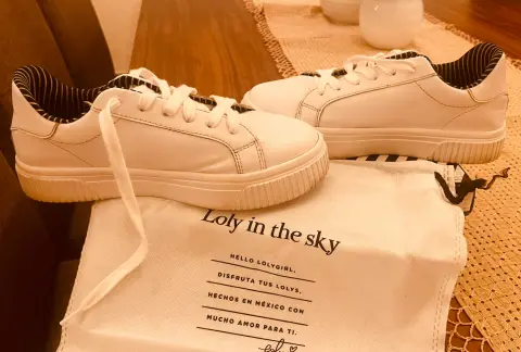 Tenis loly in the sky. Tenis blancos talla 4.5 , loly in the sky, fiel a la talla sin detalles ni roturas, muy poco uso