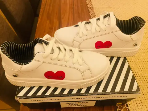 Tenis blancos talla 4.5 , loly in the sky, fiel a la talla sin detalles ni roturas, muy poco uso