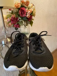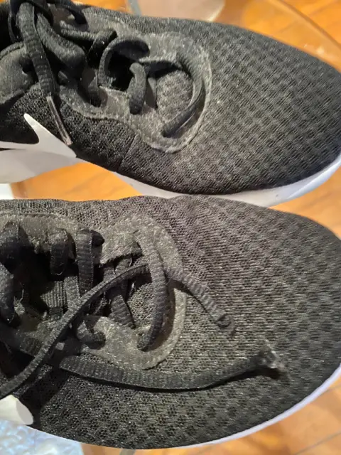 Tenis Marca Nike, color negro con suela color blanco, con agujetas, # 2 tienen detalles en las agujetas, cómodos