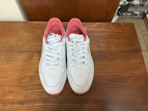 Tenis marca PUMA , color blanco con coral , cómodos , casuales y muy combinables