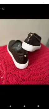 Tenis Michael Kors originales talla 8 americano solo se usaron unos minutos porque no pude caminar ya que el zapato se me sale porque me quedo grande.. no rotos ni doblados ni sucios .... Solo la suela un poco pero realmente sin ningún detalle