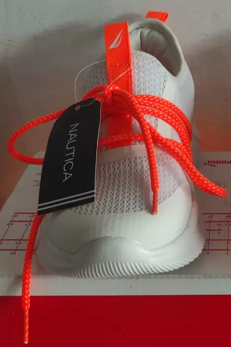 Preciosos e innovadores tenis Nautica, con agujetas fosforescentes que pueden amarrarse de la forma tradicional o por la parte de abajo, pues tiene un hueco diseñado para ello. Igualmente las agujetas pasan por los laterales, lo que permite nuevas y divertidas formas de jugar con ellas.
