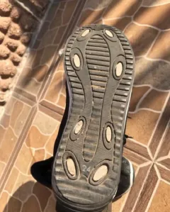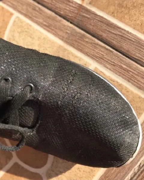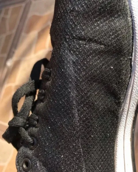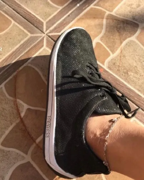 Tenis shasa #24 color negro como con brillos, tienen detalles de uso, tiene una raya de color blanco casi no se ve y algunas imperfecciones