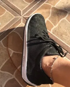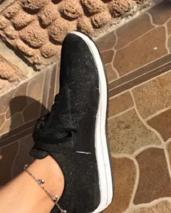 Tenis negros. Tenis shasa #24 color negro como con brillos, tienen detalles de uso, tiene una raya de color blanco casi no se ve y algunas imperfecciones