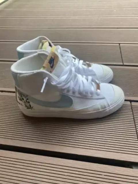 👟 Tenis Nike. Tenis Nike color blanco con detalle de flores talla 5 en perfecto estado.