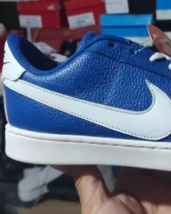 Tenis Nike blancos azul con blancoDe pielPregunta por tu tallaCon suela cocida para mayor durabilidadMuy cómodos y buen precio