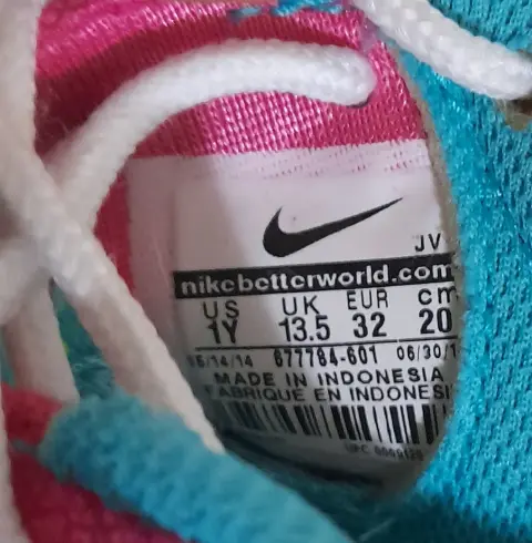Cómodos tenis para niña marca Nike talla US 1Y UK 13.5 Eur 32 Cm 20