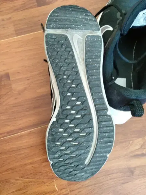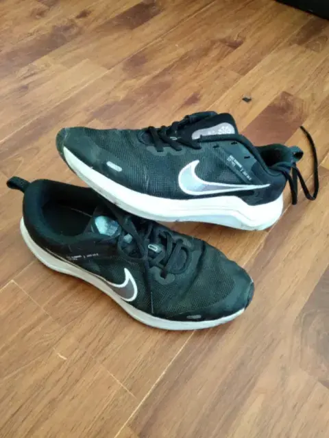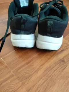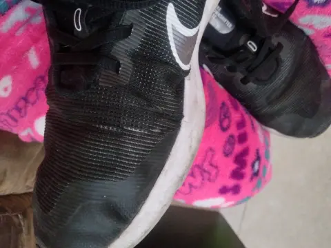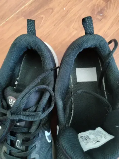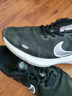 Tenis marca Nike negro usado, la plantilla, suela así como agujetas están en perfecto estado. Tiene detalle en el doblez del empeine que muestro en la fotografía. Confortables para caminar o correr.