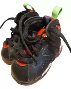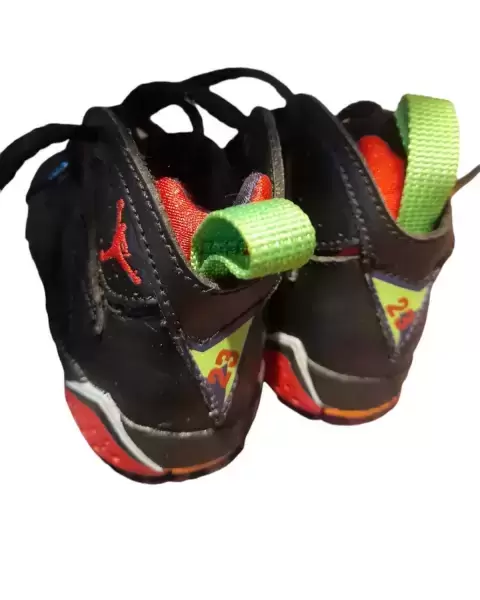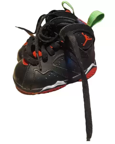 Hermosos tenis de bebé #3 americano originales jordan air 7 retro en color negro con rojo. Están divinos.
