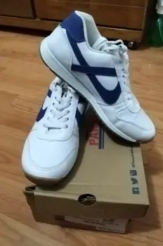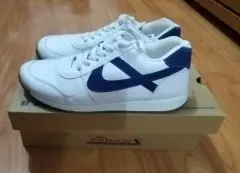 Tenis blanco con azul, en buen estado. La talla es número 5, pero el número viene reducido a 4.