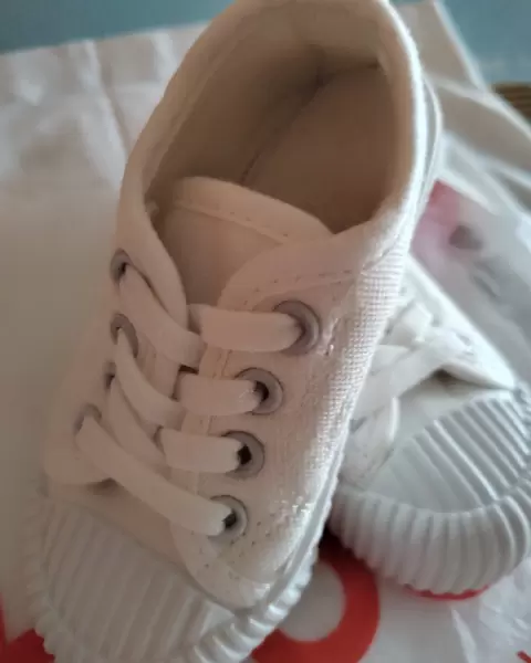 Tenis para bebé - kids. Tiernos y cómodos tenis para tu bebé. Suela interior 13.5 Cms. Color Blanco. Nuevos. Marca hibobi