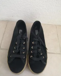 Tenis steve madden negros con plataforma, en excelente estado, son de gamuza