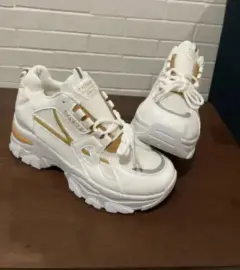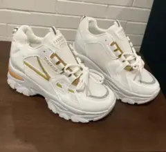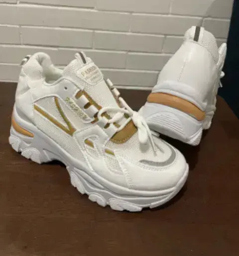 Tenis con plataforma y detalles en doradoNuevo Talla 24 mex