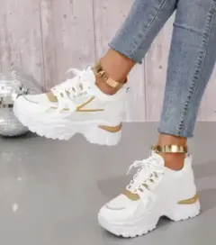 Tenis plataforma con detalle dorado