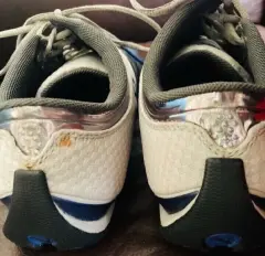 Puestos un ratito, mínimos detalles. También para 5. Nada rotos, ni sucios, ni desgastados. Tenis casual en cuero gris Oxford con textil en gris claro, con líneas azul. Se baja Precio por manchitas de óxido. Última imagen de referencia IMPECABLE.