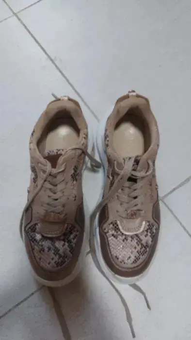 Tenis marca G by guess color tal cual las fotos,rosa Gold,café metalico algo asi es el color,suela blanco, con estampado animal print puestos un par de veces ! Esta super bonitos y comodos talla #23