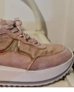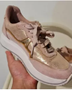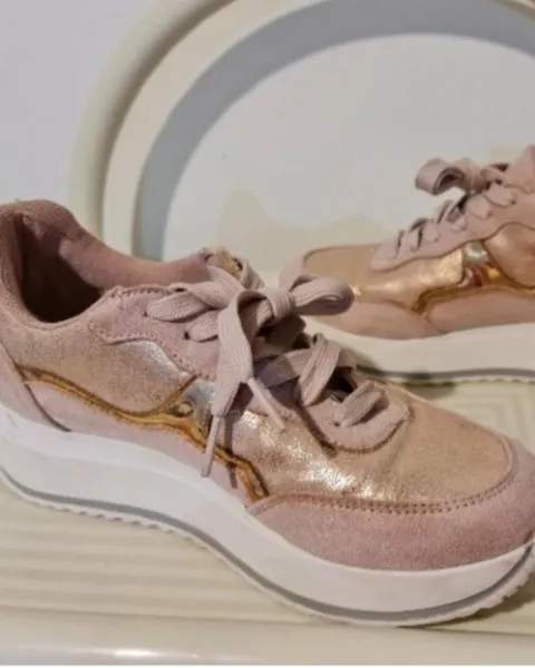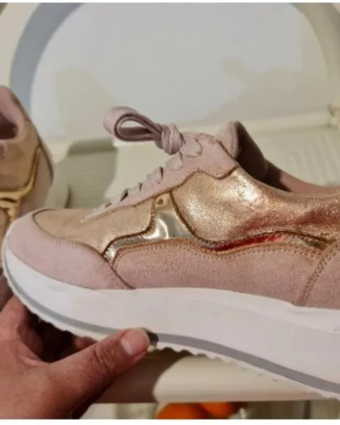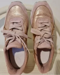 TENIS MUY PADRES Y COMODOS SUELA ANTIDERRAPANTE SUAVE!! ESTAN EN EXCELENTE ESTADO MUY POCO USO!! EL CALZADO ESTA ENTERO!! TALLA:4.5!!COMBINACION DE ROSA CON TONO COBRE EN DOS TEXTURAS!! Se ven padrisimos ya puestos!!