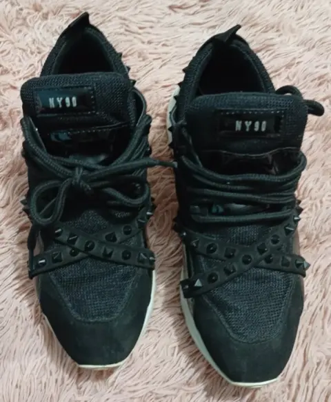 Hermosos tenis con estoperoles, son de gamusa y de tela en buen estado, originales, vienen exactos a su talla