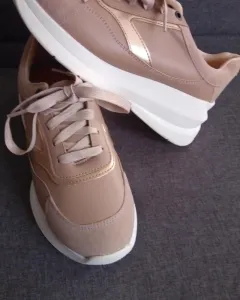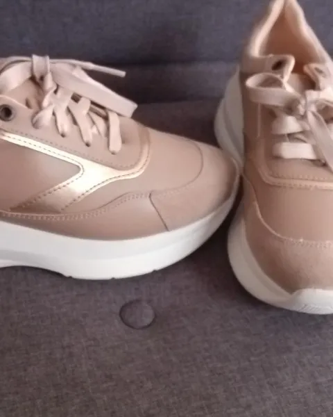 Preciosos tenis casuales talla 5 solo una puesta pues no le quedaron ,en excelente estado, ligeramente pesado por el tipo de suela pero color padrisimo de moda combinable, padrisimos