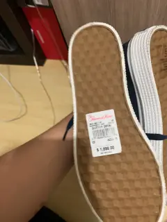 Tennis azul marino y pequeña plataforma blanca, con caja y etiqueta
