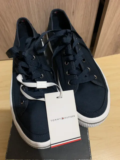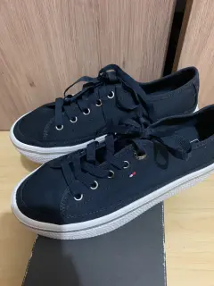 Tenis Tommy. Tennis azul marino y pequeña plataforma blanca, con caja y etiqueta