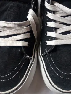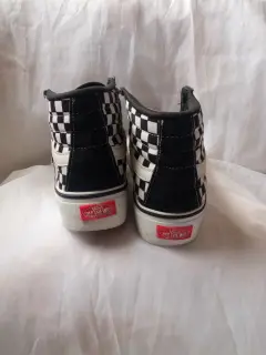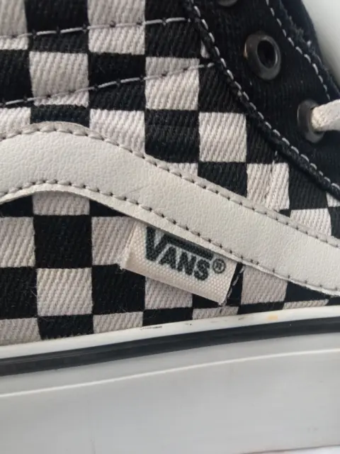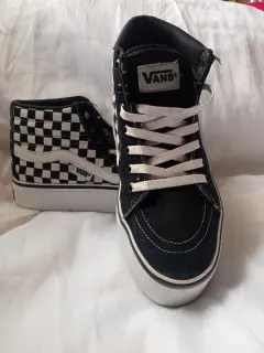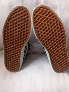 Tenis Vans #4 1/2, color blanco y negro, diseño cuadro tipo ajedrez ♟️, desgaste en la parte del talón en ambos tenis, suela prácticamente intacta, poco uso,unisex